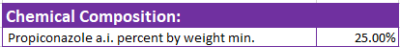 Chemical Composition: Propiconazole a i. 25.00% M/M, Emulsifying agent (Ethoxylated vegetable oil or equivalent)