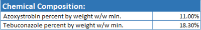 Chemical Composition: Azoxystrobin a.i 11.0% w/w, Tebuconazole ai 18.30% w/w. Magnesium Aluminium Silicate 0.92% w/w Polyalkoxylated butly ether 1.83 % w/w, Methyl methacrylate graft copolymer 2.75% w/w, Sodium alkynaphthalene sulfonate formaldehyde condensate 0.92% w/w, Dimethylpolysiloxane 0. 0.37% w/w 1,2 Benzisothiazoline 3-one 0.09% w/w, Propylene glycol 7.3% w/w, Heteropolysaccharide 2% solution 0.028% w/w, Water Q.5 % Total: 100.00% W/W. Direction of Use: Take the measured quantity of fungicide and add to it a small quantity of water. Stir thoroughly using a stick or rod and then add remaining quantity of water, stir well to from final spray solution. Precautions 1. During spraying wear, suitable respiratory equipment. 2. Wear suitable protective clothing and chemical resistant boots. 3. Wear suitable gloves. 4. Wear chemical goggles or face shield. Antidote: There is no specific antidote, treat symptomatically and give supportively therapy. First Aid: 1. Inhalation: remove victim to fresh air. Keep victim warm and at rest.if breathing is difficult, give oxygen obtain medical attention. 2. Ingestion: do not induce vomiting. Washout mouth with plenty of water, rinse mouth before giving glass of water, never give anything by mouth to anunconcious person, if breathing is difficult, give oxygen get medical attention. 3. Skin contact remove affected clothing and wash all exposed skin area with soap and water followed by warm water rinse. consult a doctor in the event of any complaints. 4. Eye contact: wash off with plenty of water if pain persists, contact an eye specialist. Symptoms Irritating to eyes, may cause sensitization by skin contact. Recommendations As per leaflets. Caution: “Not to be used on crops other than Specified on this Label/ Leaflet.
