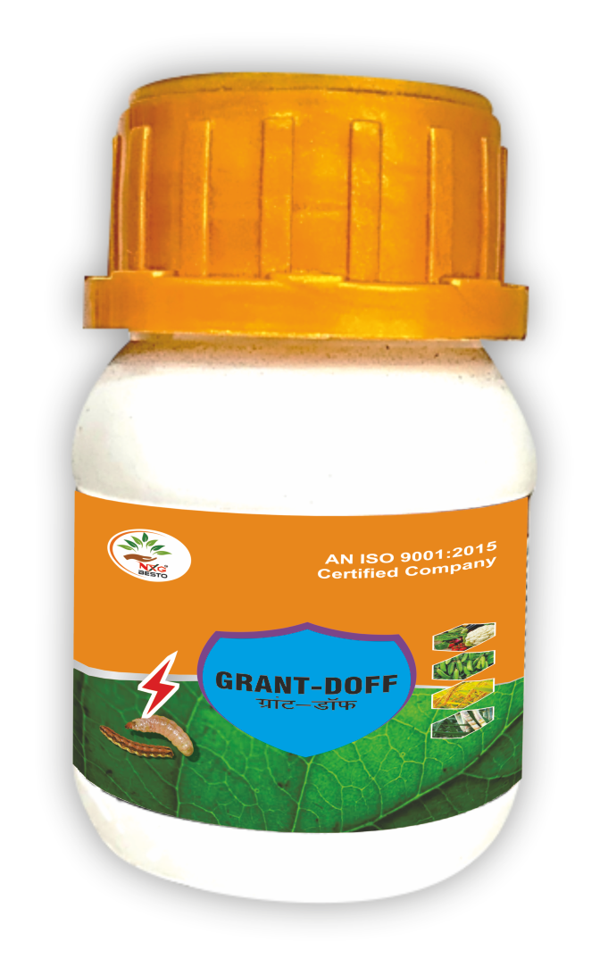 Leaf Folder & Stem Borer of Paddy. GRANT-DOFF is specially designed with botanical oil formulation for controlling the various chewing pests in various crops. It has fast acting molecules which results in immediate insects killing. It controls all pest stages reducing crop damage and have long lasting protection against caterpillars. GRANT-DOFF is highly effective Larvicide to control the pest populations including the Diamond Back Moth on Cabbage, American & spotted Bollworm, Leaf folder & stem Borer on Paddy, Fruit & Shoot Borer on Tomato, Chilli & Capsicum, Fruit & shoot Borer on Brinjal, Shoot & Top Borer on Sugarcane and Pod Borer on Pulses. Excellent larvicide against various Lepidopteran chewing pests in Cotton, Paddy, Sugarcane, vegetables & Pulses. Control on various Pests: Fruit & Shoot Borer of Brinjal , Tomato, Chilly, and Capsicum. Diamond Back Moth of Cabbage.