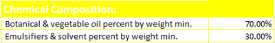Dosage: Vegetables, Rice & Pulses :- Spray 1 ml per liter of water. Sugarcane:- Drench 250 ml per acre in 400 liters water. Composition:- Botanical & vegetable oil 70% w/w Emulsifiers & solvent 30% w/w 100% w/wTotal.