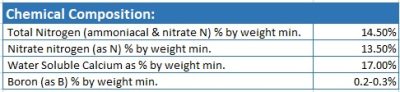 Improves the cell wall strength , disease resistance and overall plant vigor. It provides a balanced ratio of calcium nitrogen and boron essential for plant cell division, flowering , fruiting, and nutrient transport.