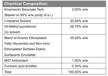 Acve Ingredient: Emamecn benzoate, a broad-spectrum inseccide.